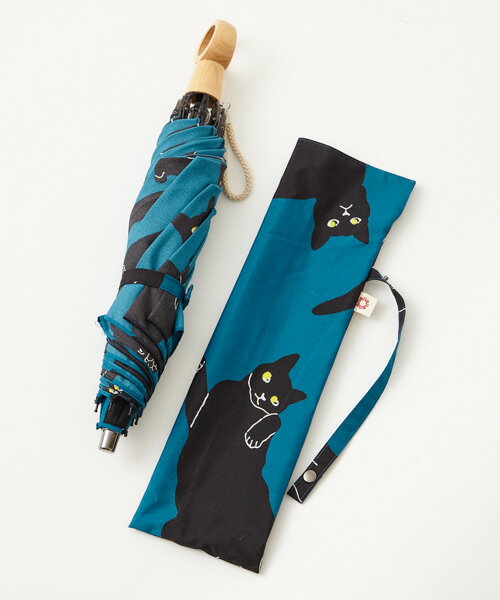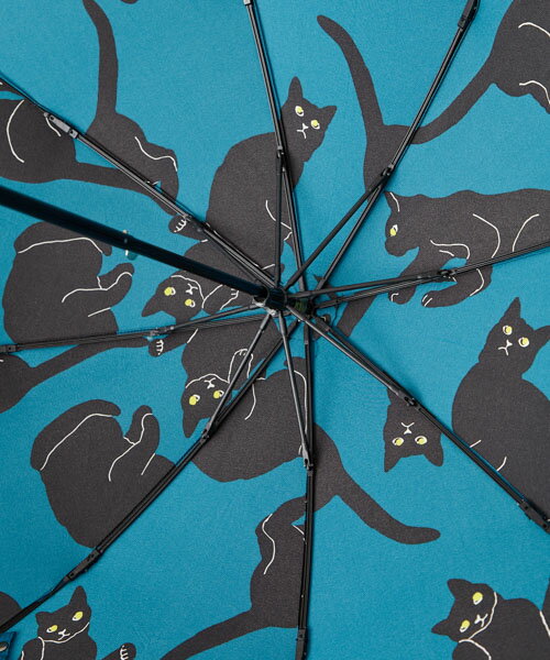 柄・バリエーション ターコイズ 商品説明 ふりふオリジナルテキスタイルの「ねこねこねこ」の折り畳み日傘。