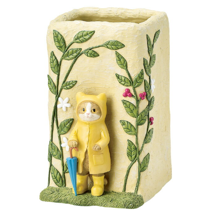 「黄色いカッパを着た可愛いネコちゃんの傘立て-RAINY CAT-」雨の日も楽しくなるアンブレラスタンド。
